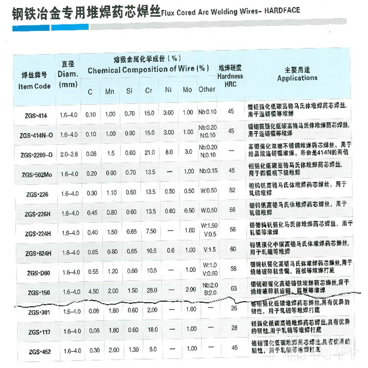 產品分類:鋼鐵冶金專用堆焊藥芯焊絲